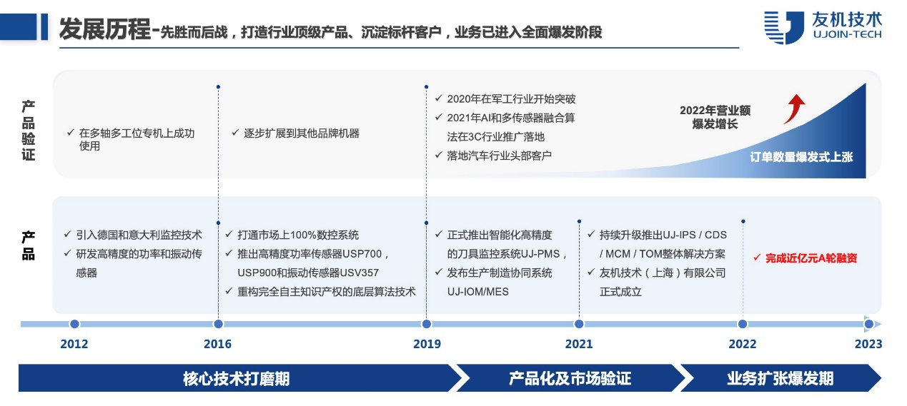 友机团队在经过近10年的核心技术打磨、产品化及市场验证迭代后,于2021年正式成立友机技术(上海)有限公司,以机床底层监控技术为核心业务,结合IOM车间信息化软件、刀具管理软件等功能模块为用户在自动化、数字化、智能化的升级改造进程中提供高效、可靠的技术支撑,为工厂提供数字化全局解决方案,业务也进入快速的扩张爆发期。