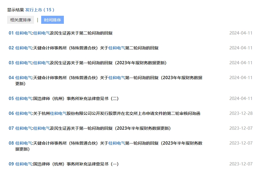 4月11日,杭州佳和电气股份有限公司(下称“佳和电气”)回复了北交所第二轮审核问询,保荐机构为民生证券。