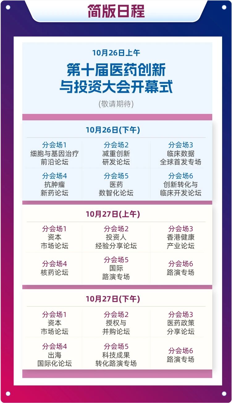 剧透抢先看|第十届医药创新与投资大会初版日程正式发布