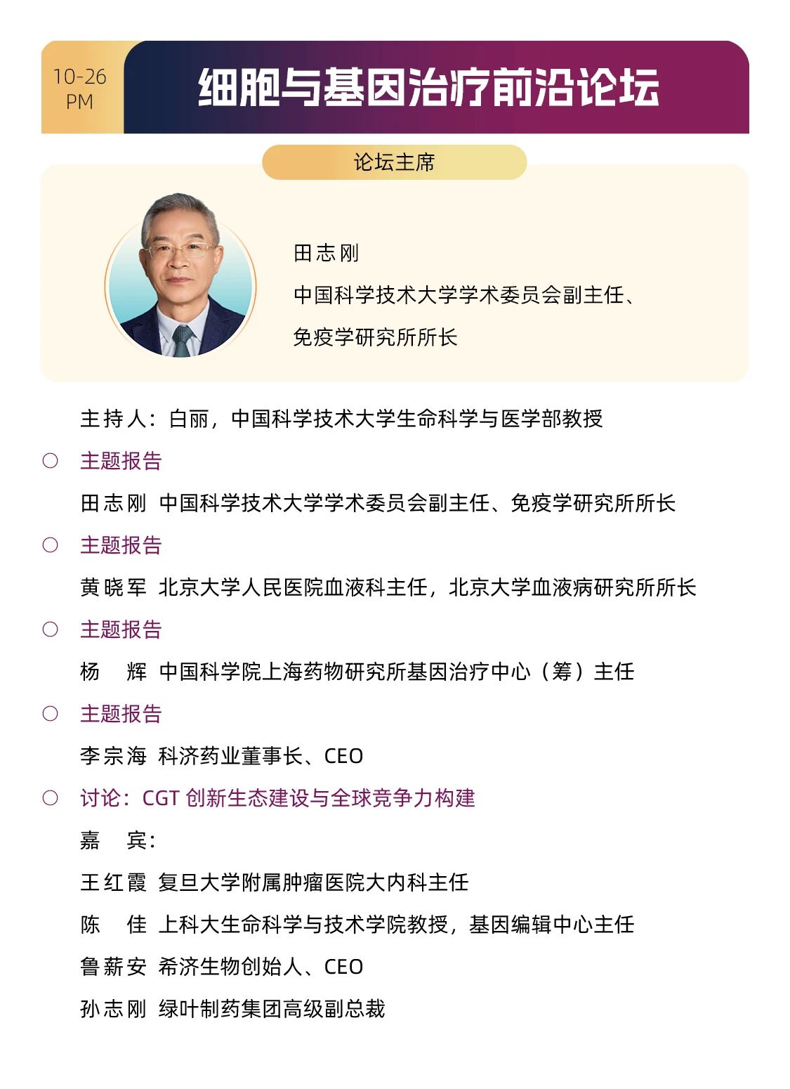 资深专家学者坐阵大会主席,汇聚学术界泰斗、临床专家、行业领袖、精英学者、一线投资人和政府相关部门负责人,分享前沿突破技术、投资并购实战经验和一手政策解读,搭建跨界沟通桥梁,助力产业生态构建。