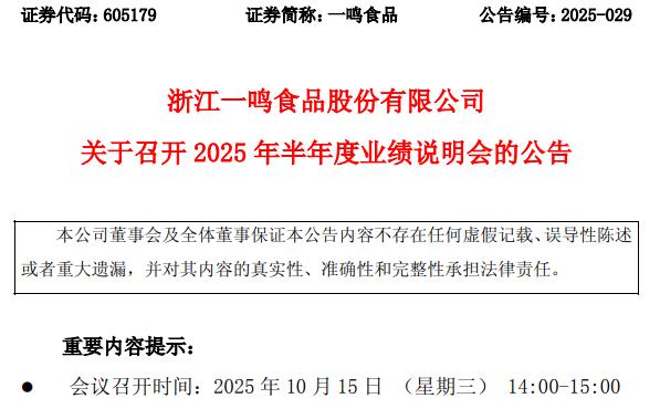 在10月15日举行的2025年半年度业绩说明会上,一鸣食品(605179.SH)三位实际控制人的集体减持计划成为投资者关注的焦点。