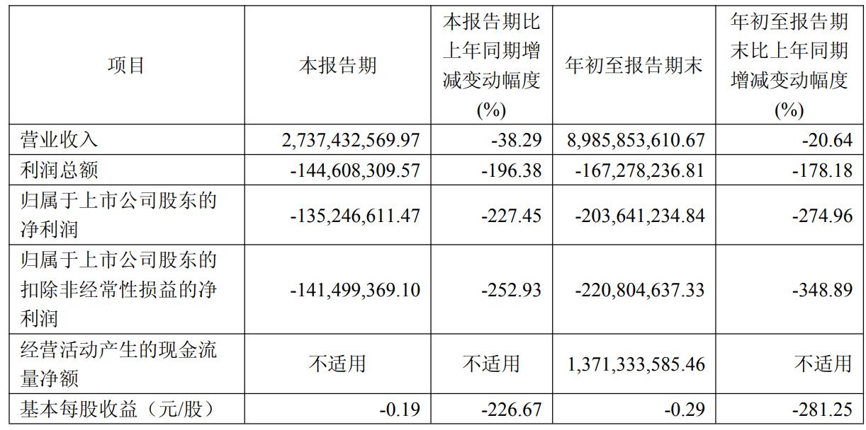 报告显示,容百科技前三季度实现营收89.86亿元,同比下降20.64%;净利润为-2.04亿元,同比下降274.96%;扣非归母净利润为-2.21亿元,同比下降348.89%。