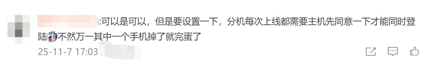 有网友表示不支持,认为容易出现盗号的情况;也有网友表示可以接受,但需要设置,分机每次上线都需要主机先同意一下才能同时登录。