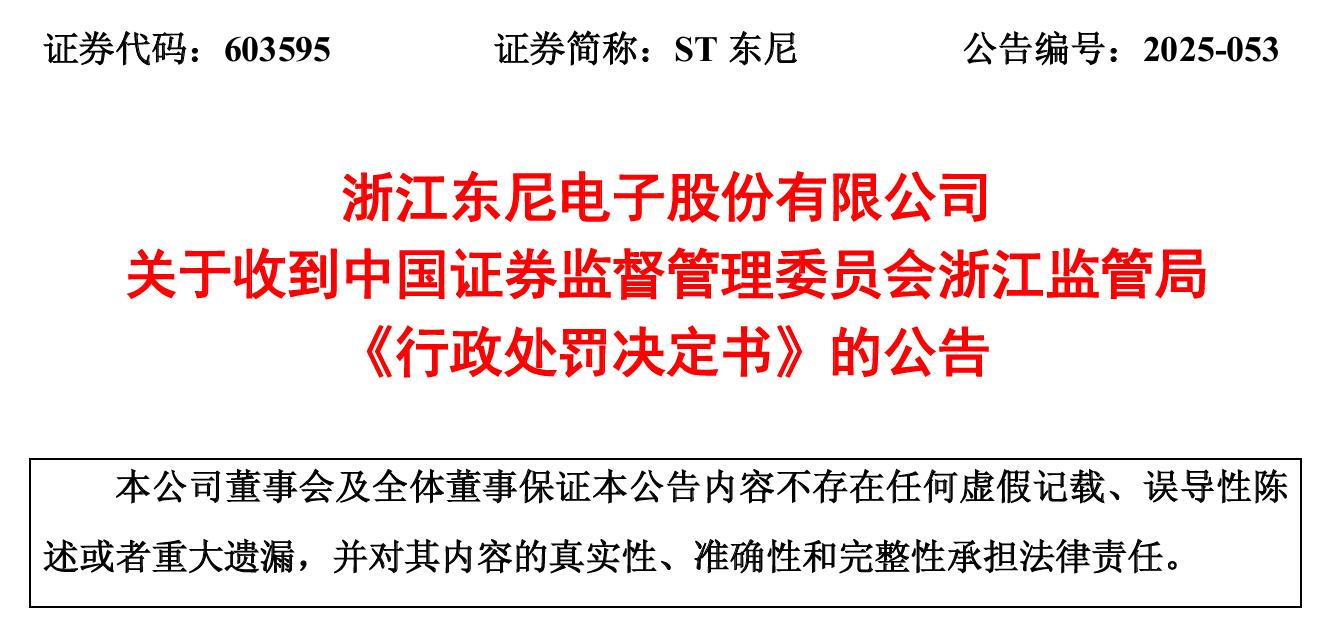 ST东尼涉两项严重违规被罚700万元 95后美女董秘被罚90万元后离任