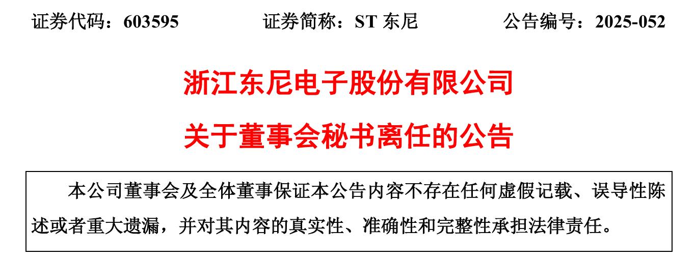 值得一提的是,处罚公布当日,ST东尼董事会即收到翁鑫怡的书面辞任报告,这位95后董秘因个人原因正式卸任。