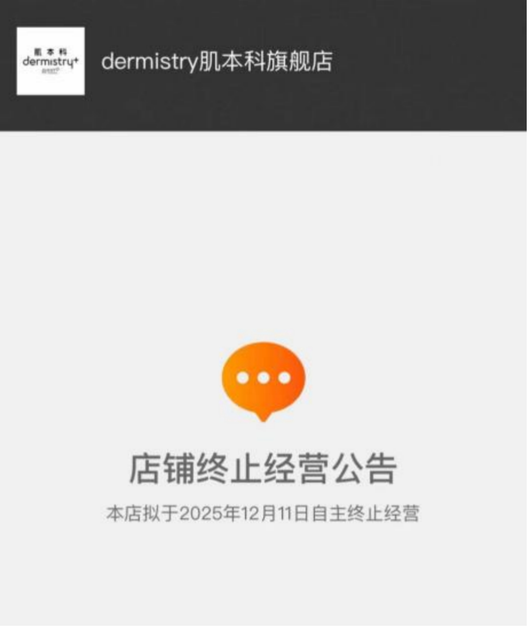 据小红书网友发布的帖子显示,肌本科天猫旗舰店发布了店铺终止经营公告,拟于2025年12月11日自主终止经营。