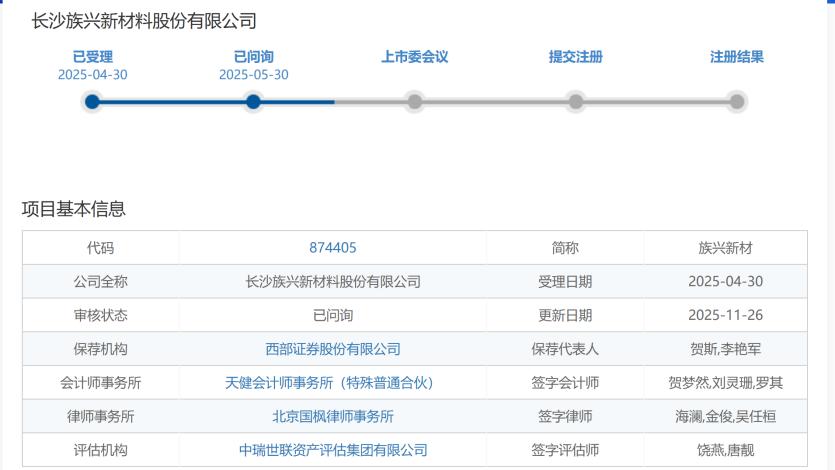 近日,长沙族兴新材料股份有限公司(以下简称“族兴新材”)回复了北交所第二轮审核问询函,涉及业绩可持续性、业绩预测、销售真实性及核查充分性等问题。同时,该公司向北交所递交了上会稿,将于2025年12月3日迎来IPO“终极大考”。