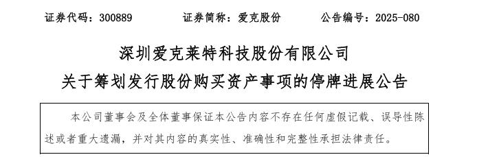 11月18日,爱克股份发布公告称,正在筹划发行股份及支付现金购买资产,同时拟募集配套资金并购东莞硅翔。爱克股份股票自11月19日开市时起开始停牌。