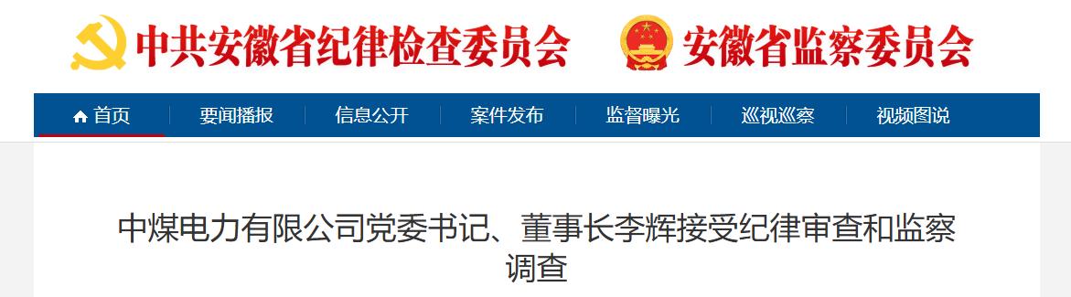 11月26日,据安徽纪检监察网消息,中煤电力有限公司(下称“中煤电力”)党委书记、董事长李辉涉嫌严重违纪违法,目前正接受中国中煤能源集团有限公司(下称“中煤集团”)纪委纪律审查;经安徽省监委指定管辖,接受池州市监察委员会监察调查。