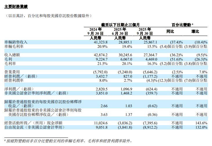 近日,理想汽车公布2025年第三季度财报。财报显示,理想汽车第三季度收入总额为274亿元,同比大幅减少36.2%,环比下降9.5%;净亏损为6.24亿元,而去年同期净利润高达28亿元,同比由盈转亏,经营亏损达12亿元。车辆交付量方面,理想汽车第三季度总交付量为93211辆,同比暴跌39.0%,这已是其连续2个季度交付量低于10万辆,承压明显。