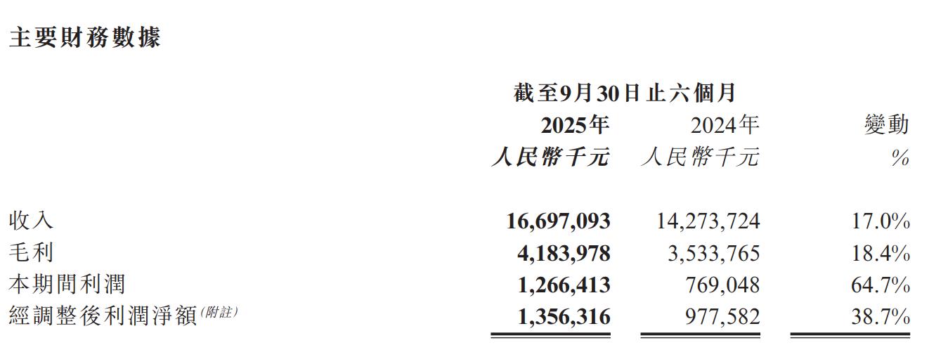 11月26日,阿里健康发布了2026财年中期业绩公告。报告显示,截至2025年9月30日止6个月内,阿里健康营收为166.97亿元,同比增长17%;毛利为41.84亿元,同比增长18.4%;净利润为12.66亿元,同比增长64.7%;经调整后利润净额为13.56亿元,同比增长38.7%。