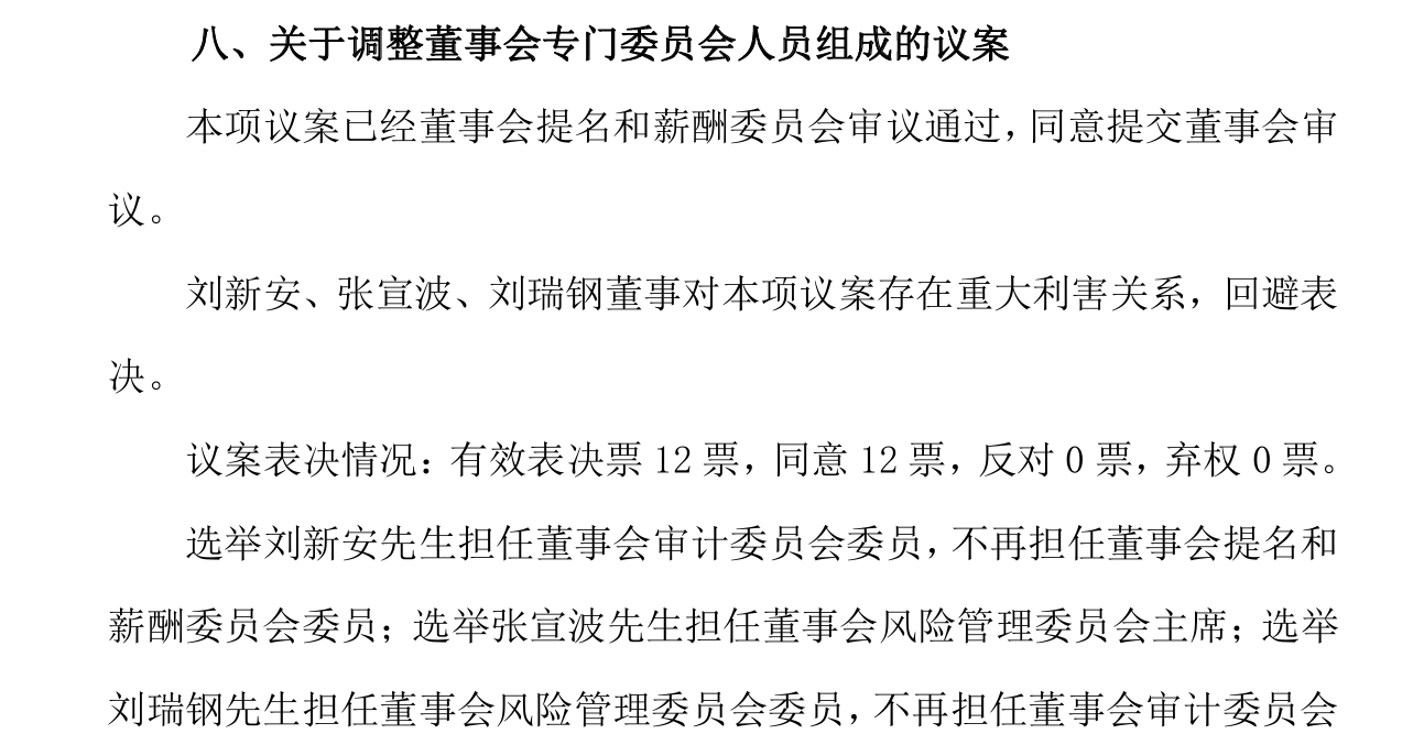 具体调整方案显示,刘新安不再担任董事会提名和薪酬委员会委员,转而担任审计委员会委员;张宣波出任董事会风险管理委员会主席;刘瑞钢退出审计委员会,担任风险管理委员会委员;陈雪将同时任职风险管理委员会与提名和薪酬委员会委员;宋晓东获任战略规划委员会、关联交易控制委员会双委员职务;浦永灏则身兼战略规划委员会、风险管理委员会、社会责任与消费者权益保护委员会三项委员职务。