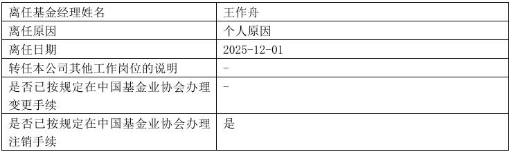 12月2日,汇安基金发布公告称,基金经理王作舟因个人原因分别离任汇安恒鑫12个月定开纯债债券基金、汇安裕宏利率债债券基金、汇安嘉汇纯债债券基金、汇安短债债券基金、汇安中证同业存单AAA指数7天持有期基金、汇安中短债债券基金、汇安永福90天持有期中短债债券基金、汇安永利30天持有期短债基金、汇安质选增利债券基金等9只基金。此后,王作舟名下再无其他在管基金。