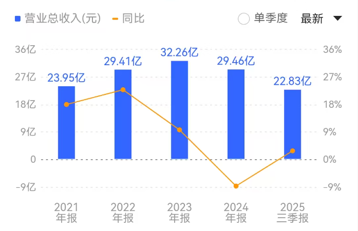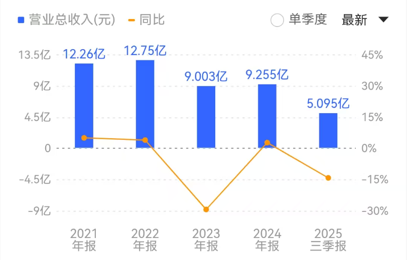 (西部材料2021年到2025年Q3营业收入 来源:同花顺财经)