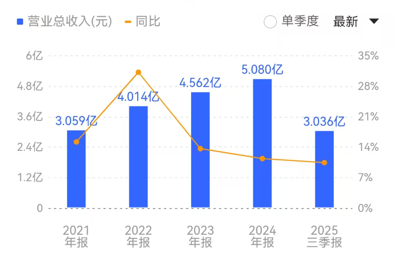 (航天环宇2021年到2025年Q3营业收入 来源:同花顺财经)