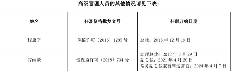 公开资料显示,程康平还兼任泰康保险集团股份有限公司管理委员会成员、执行副总裁。程康平曾任泰康人寿湖北分公司助理总经理、福建分公司筹备负责人、副总经理(主持工作)、河北分公司总经理、四川分公司总经理、助理总裁兼个险事业部总经理、副总裁兼个险事业部总经理,泰康保险集团股份有限公司副总裁兼泰康人寿保险有限责任公司总裁等职务。
