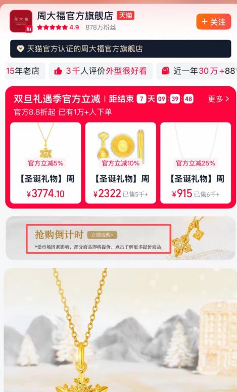 据新京报等媒体报道,近日,周大福官方旗舰店在首页发布了一条提示:受市场因素影响,部分商品即将提价。