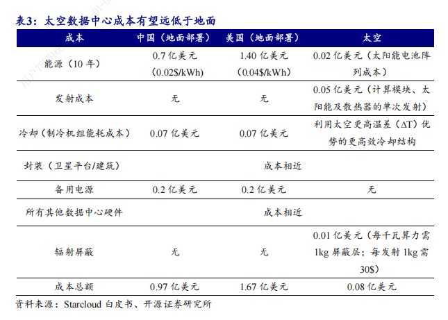 太空算力有望为商业航天领域长期存在的经济闭环难题提供解决方案,生命周期运营成本有望降低至地面设施的二十分之一。随着发射成本的持续下降以及在轨计算能力的不断提升,未来太空算力领域或将形成“发射越多,节省越多”的发展格局。