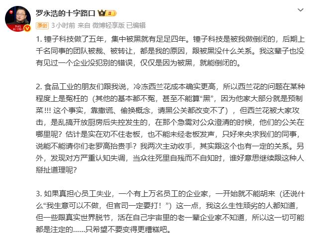 罗永浩还表示,“如果真担心员工失业,一开始就不能胡来(还说什么“我生意可以不做,但官司一定要打!”)”。