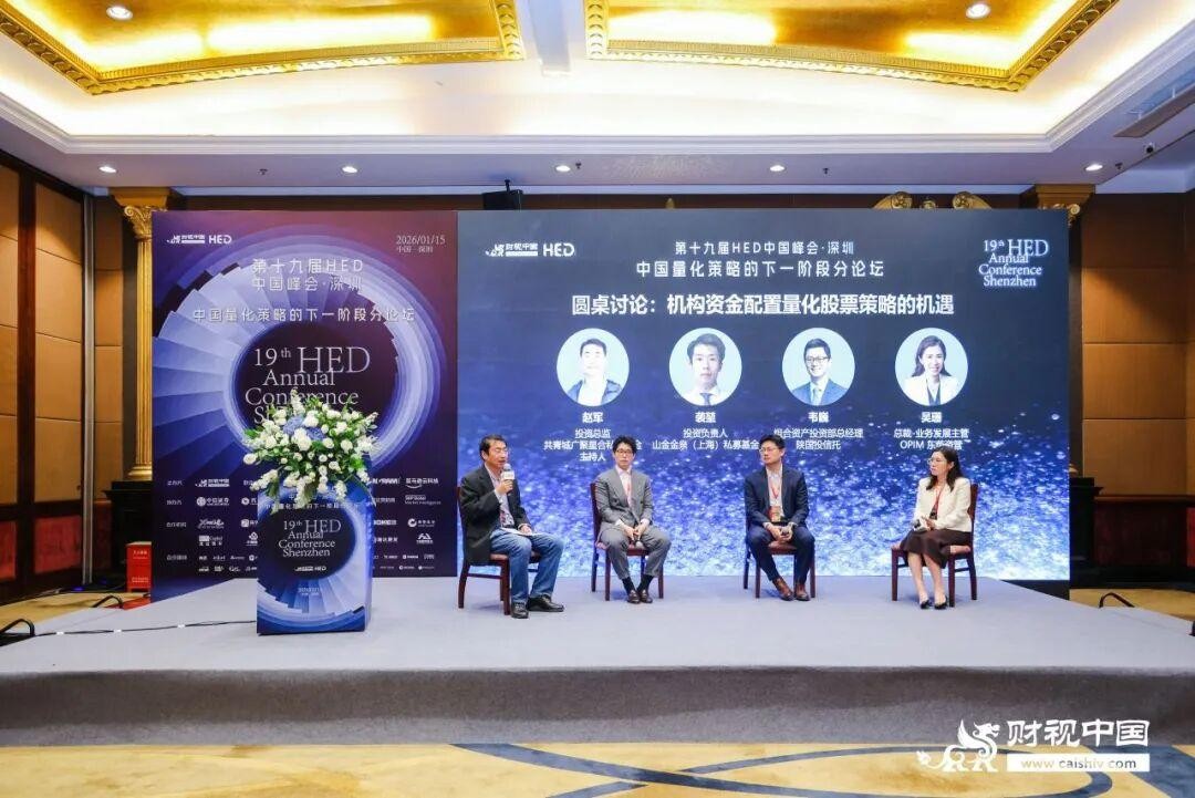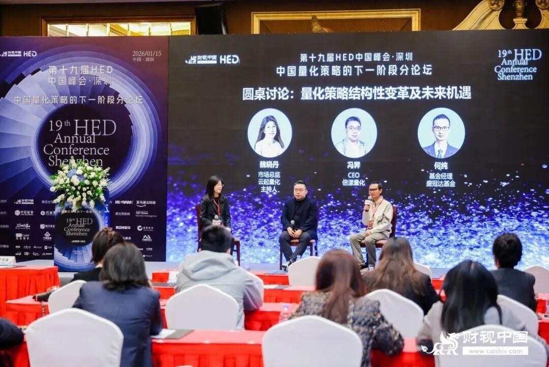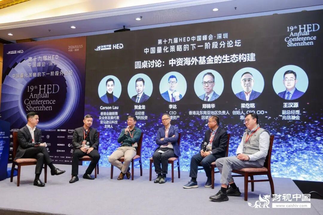 2026年1月15日,第十九届HED中国峰会·深圳于深圳成功举办。本届峰会以投资中国逻辑重塑与财富管理范式转移为背景,聚焦对冲基金、ETF及金融衍生品等多个领域。峰会由财视中国主办,东吴证券联合主办,并得到分论坛联合主办方亚马逊云科技(AWS)、英迈(Ingram Micro),协办方中信证券、兴证期货,学术支持介甫资本市场研究院,展览赞助商标普全球市场财智,以及合作机构前路有光数字科技、陆享基金、量利资本、陕国投信托、波克私募、国赞投资、进益资本、千朔投资、OPIM东英资管、优美利投资、瑞达期货、中盈蓝景基金的鼎力支持。与会嘉宾就低利率环境下的资产配置突围、全球化视野下的投资机遇以及量化策略的下一阶段演进等核心议题展开了深度交流与思想碰撞。