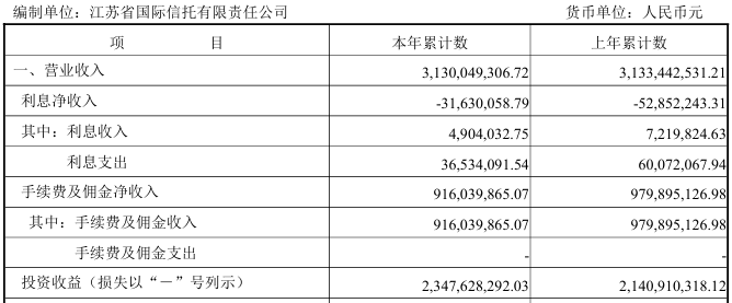 财报显示,2025年,江苏信托利息净收入为-0.32亿元;手续费及佣金净收入为9.16亿元,同比下降6.52%;投资收益为23.48亿元,同比增长9.66%。
