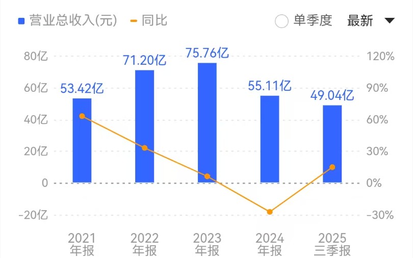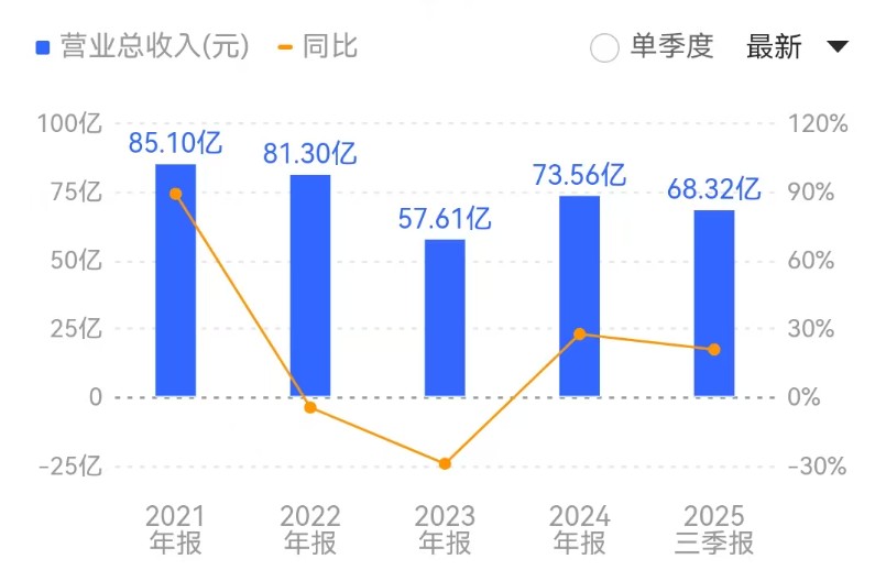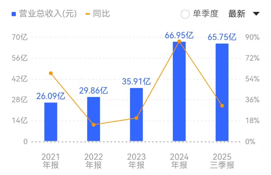 (兆易创新2021年到2025年Q3营业收入来源:同花顺财经)