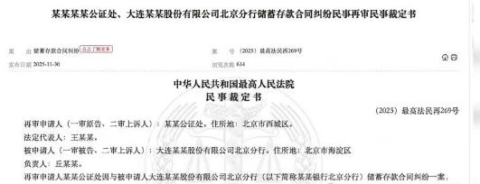 近日,最高人民法院就北京某公证处与大连银行北京分行储蓄存款合同纠纷一案作出再审裁定,一桩涉案1.8亿元的理财资金失踪案随之浮出水面。