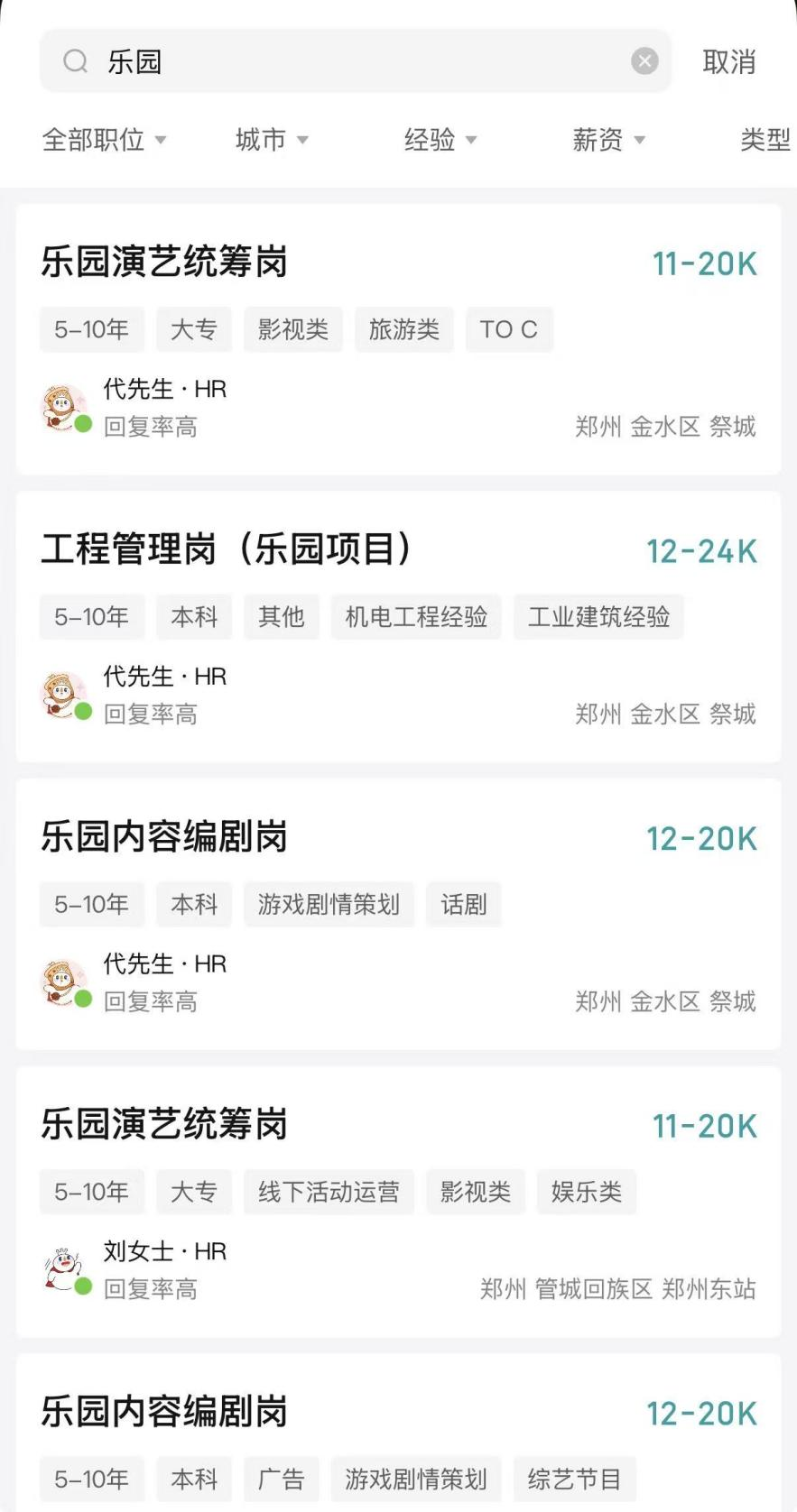 BOSS直聘信息显示,蜜雪冰城目前正在招聘的乐园相关岗位包括乐园演艺统筹岗、乐园内容编剧岗、乐园周边产品统筹岗和工程管理岗(乐园项目)等,岗位薪资为月薪11K至24K之间,均要求5-10年的工作经验,工作地点位于河南郑州。