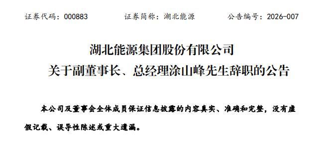 4月1日,湖北能源(000883.SZ)发布公告称,涂山峰因达到法定退休年龄,申请辞去董事会副董事长、董事及总经理职务。辞职后,涂山峰将不在湖北能源及控股子公司担任任何职务。