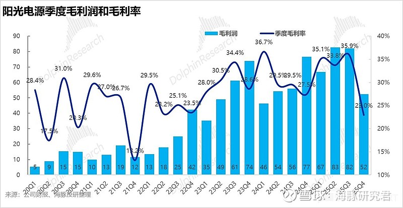 收入端的激增直接导致该低毛利业务在 Q4 总营收盘子中的占比环比大幅攀升 10 个百分点至 23%。但与此同时,作为公司盈利中枢、相对高毛利的核心主业(光伏逆变器与储能系统),其合计营收占比却环比大幅萎缩了 12 个百分点,降至 71%,收入结构的变差也直接拉低了整体的表观综合毛利率。
