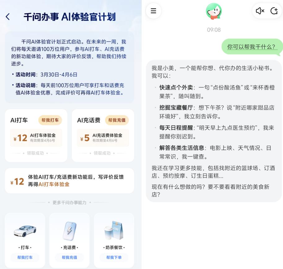 阿里发力C端的千问锚定「AI办事」,在集成购物、外卖、订票等能力之后,又与自家的高德合作,提供AI「打车」服务;发力B端的「悟空」,用AI将自家的钉钉重做了一遍,并将阿里的to B能力统一放进去。