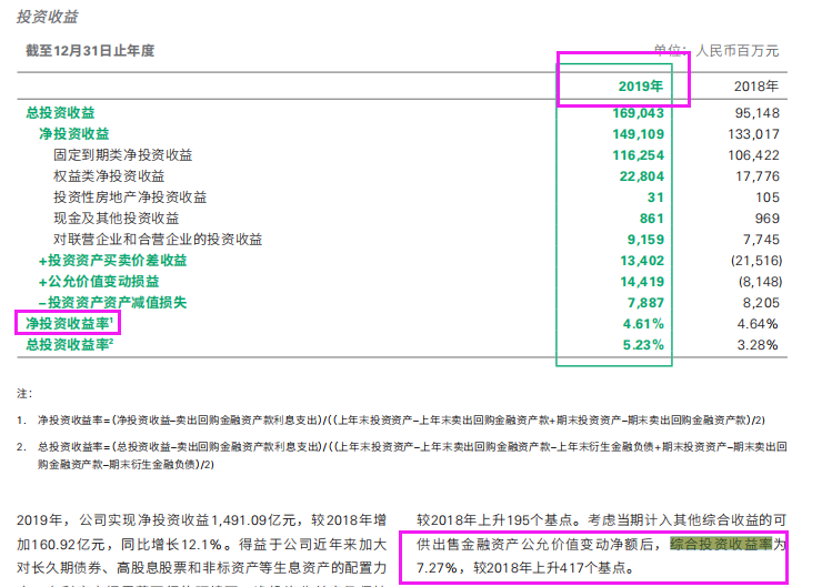 但受2020年利率总体下行、存量资产到期等因素影响,中国人寿的净投资收益率为4.34%,较2019年下降27个基点;综合投资收益率为6.33%,较2019年下降95个基点。